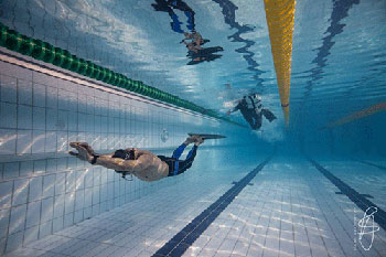 - a twenty-five meters underwater swim with fins.